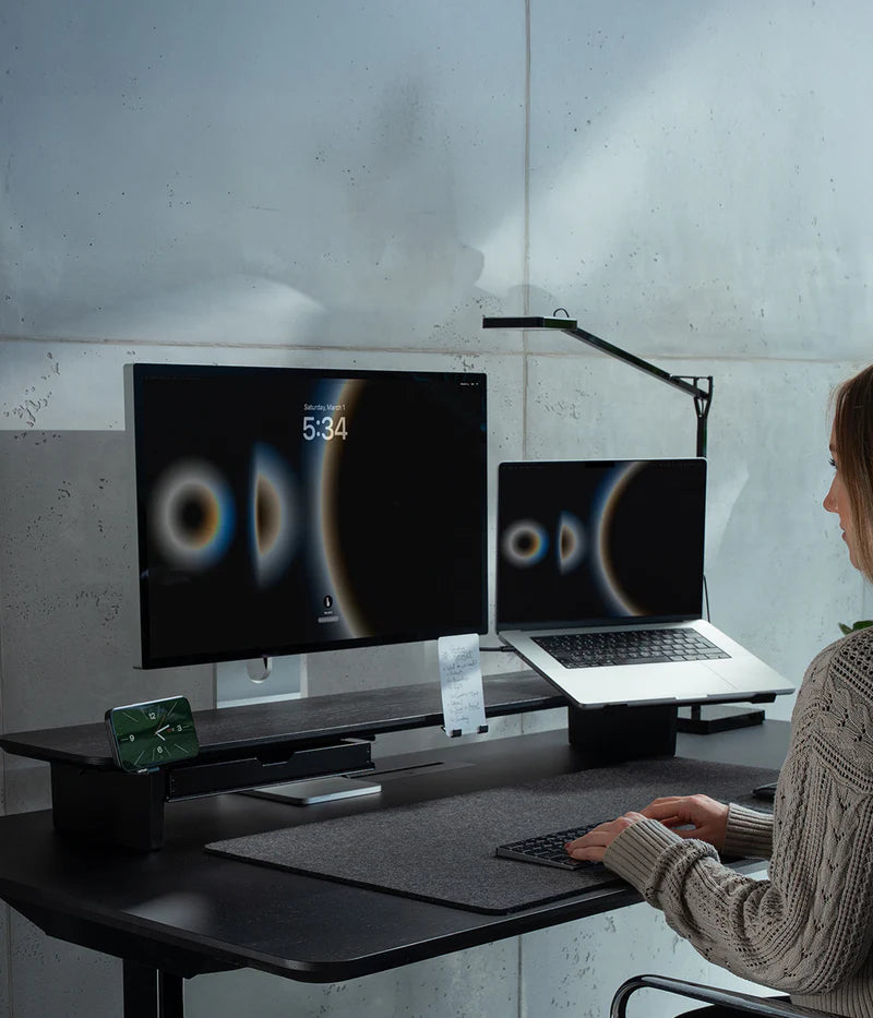 Definitely not a classic monitor stand as you know it. You can attach various accessories directly to the Setup Cockpit. SO smart!