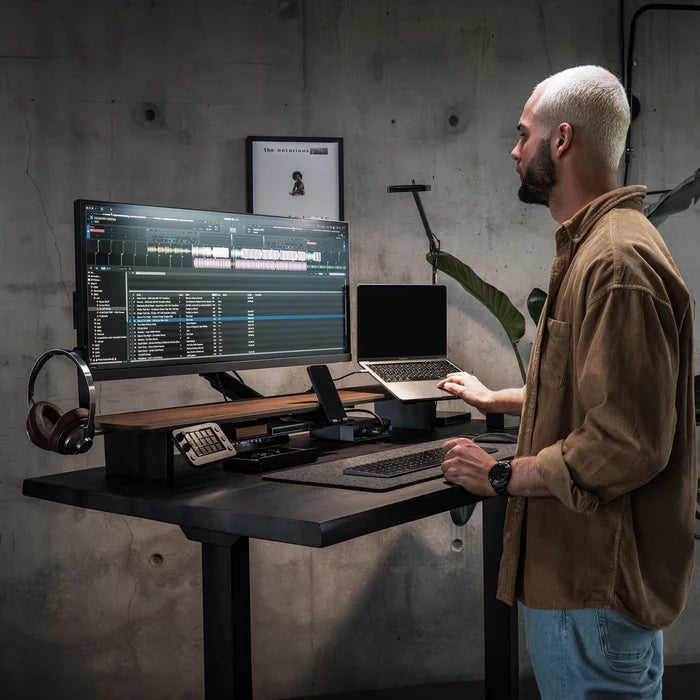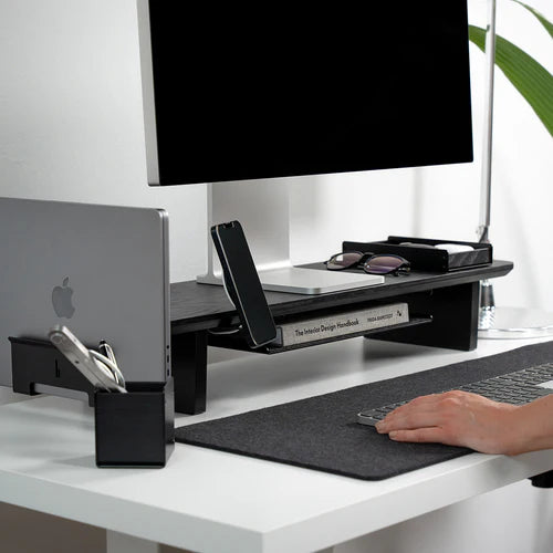 The BALOLO® Setup Cockpit combines aesthetics and functionality. The monitor elevation raises the screen to an ergonomic height. With its minimalist design, it becomes a statement in any desk setup and creates a new level of structure and order.